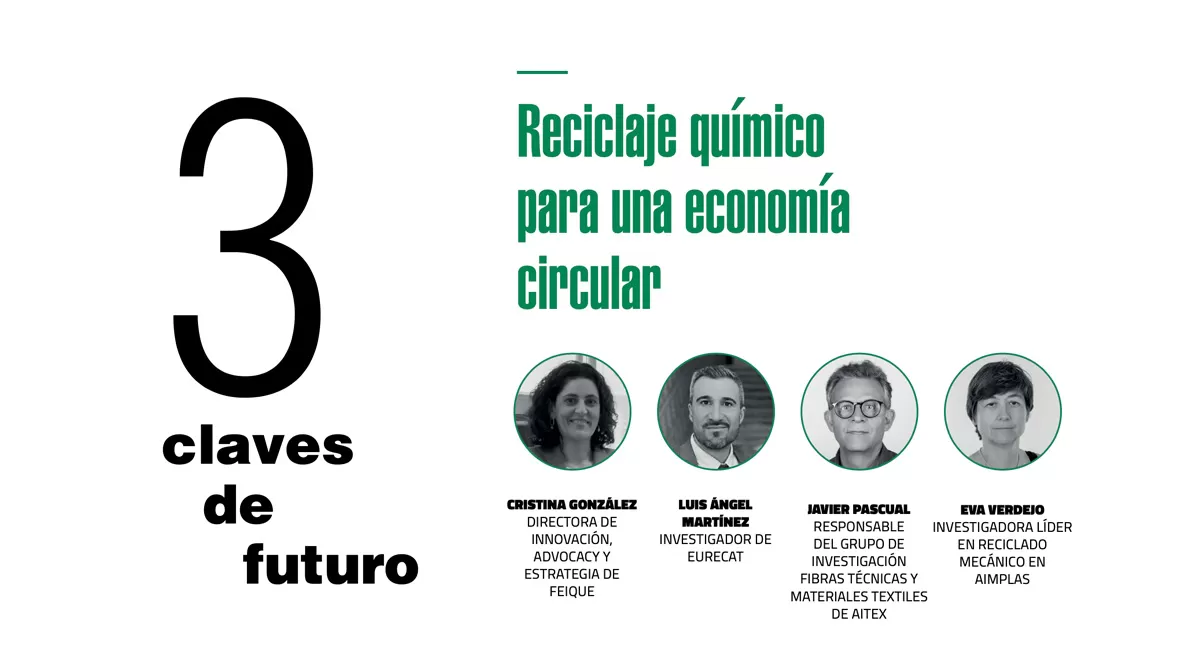 Javier Pascual (Aitex): El reciclaje químico de residuos textiles juega un papel fundamental como catalizador de la circularidad, permitiendo reciclar fibras de diferente naturaleza y composición. AITEX se centra en el desarrollo del reciclado químico de fibras de poliéster y algodón, que representan el 54% y 22% de la producción mundial de fibras respectivamente. Es importante destacar que el reciclado químico desarrollado en AITEX permite reciclar el residuo un número infinito de veces sin pérdida de propiedades, cerrando así el ciclo de los materiales, reduciendo el uso de recursos naturales y la dependencia de recursos fósiles para la obtención de nuevas fibras.