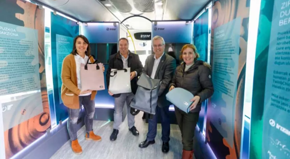 Para mostrar y compartir con la ciudadanía el proyecto Trakziona, se ha realizado una exposición en un autobús cedido por Irizar. En este autobús se trabajará el concepto de la economía circular con la ayuda de una educadora medioambiental a través del visionado de vídeos de la experiencia, ejemplos reales y talleres.