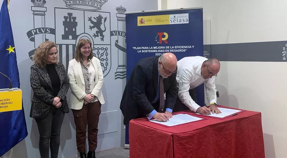 El Ministerio de Agricultura, Pesca y Alimentación (MAPA), a través de la Sociedad Mercantil Estatal de Infraestructuras Agrarias (SEIASA), ha formalizado en Logroño dos adendas por las que invertirá 35.585.000 euros (IVA no incluido) del Plan de Recuperación, Transformación y Resiliencia Fase II, en la modernización de 3.693 hectáreas de regadíos en La Rioja.