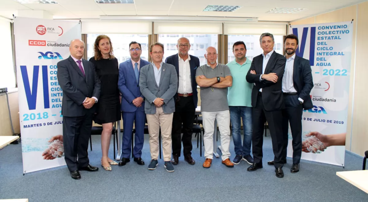 La Asociación Española de Empresas Gestoras de los Servicios de Agua Urbana (AGA), la Federación de Industria, Construcción y Agro de la Unión General de Trabajadores (FICA-UGT) y la Federación de Servicios a la Ciudadanía de CCOO (FSC-CCOO) han firmado hoy, en Madrid, el VI Convenio Colectivo Estatal del Ciclo Integral del Agua 2018-2022.