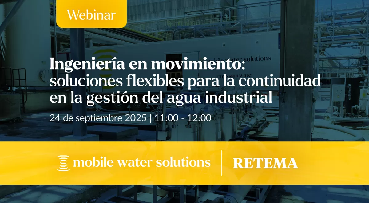 Para dar respuesta a este desafío, RETEMA y Mobile Water Solutions presentan el webinar “Ingeniería en movimiento: soluciones flexibles para la continuidad en la gestión del agua industrial”, que se celebrará el próximo 24 de septiembre, de 11:00 a 12:00 h, en formato online.