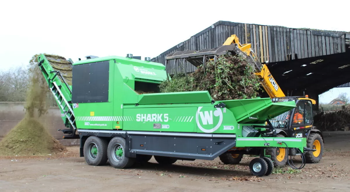 La combinación de la trituradora Willibald EP5500 SHARK V, la volteadora TBU 3P y la criba ScreenBee configura un sistema completo para optimizar la producción de biogás
