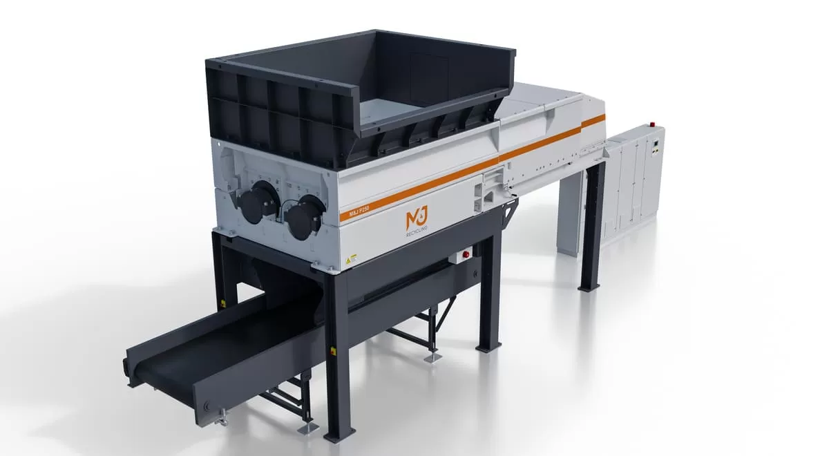 El revolucionario M&J P250 E-drive es un pre-triturador robusto y versátil que se utiliza para aplicaciones de procesamiento y reciclaje de todo tipo de residuos.