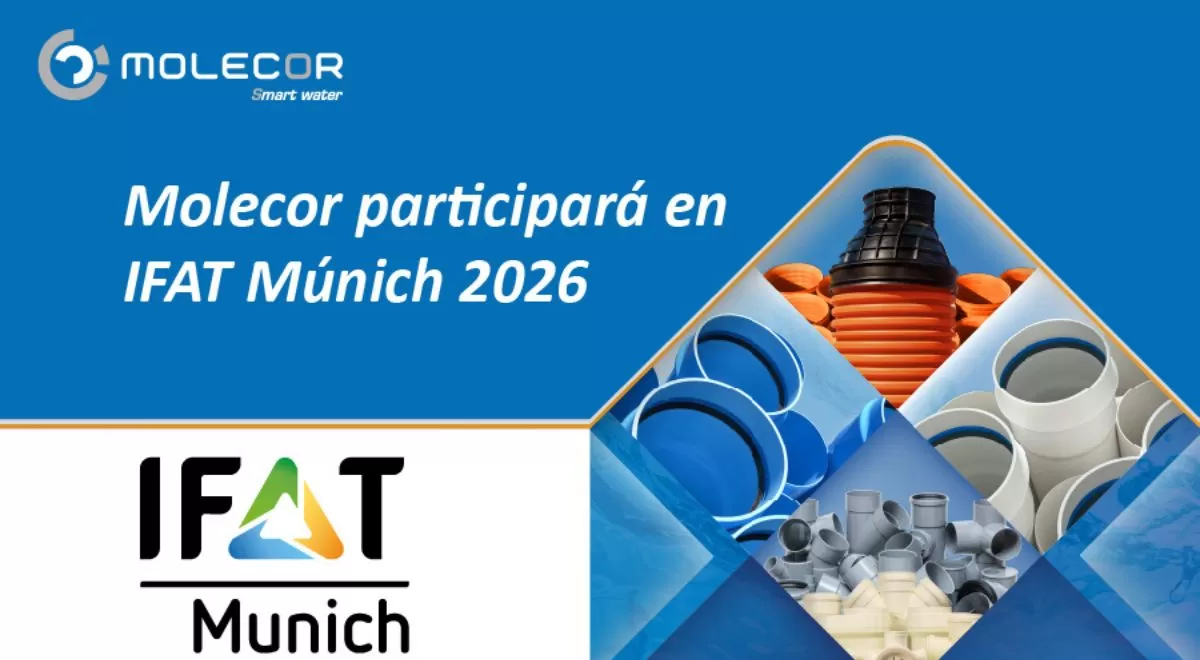 Molecor participará en IFAT Múnich 2026, la feria internacional de referencia en gestión del agua, residuos, energía y medio ambiente, que se celebrará del 4 al 7 de mayo en la ciudad alemana. La compañía aprovechará este encuentro sectorial para presentar sus últimas innovaciones en soluciones de canalización en PVC orientado (PVC-O) aplicadas a infraestructuras hidráulicas.