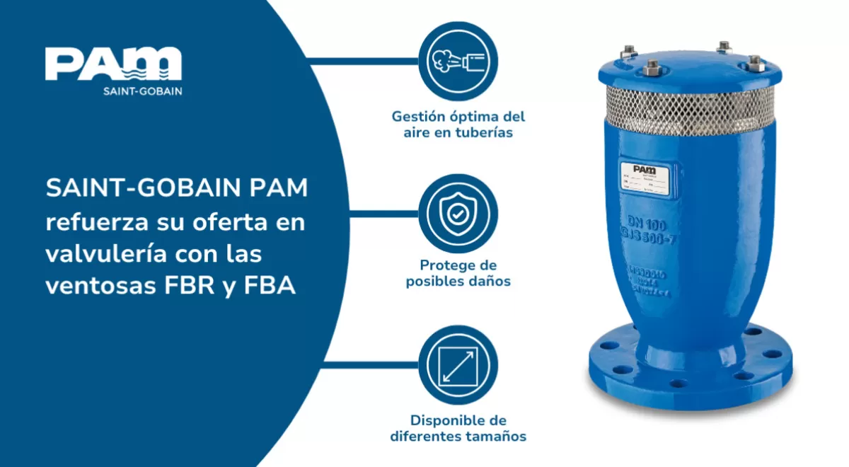 La compañía Saint-Gobain PAM, reconocida por su liderazgo en soluciones completas de canalización, ha anunciado la incorporación de la ventosa trifuncional FBR a su catálogo de válvulas. Esta pieza se ha desarrollado para incrementar la eficiencia y la seguridad en redes presurizadas de distribución de agua limpia, respondiendo a las necesidades de ingenieros y operadores del sector.