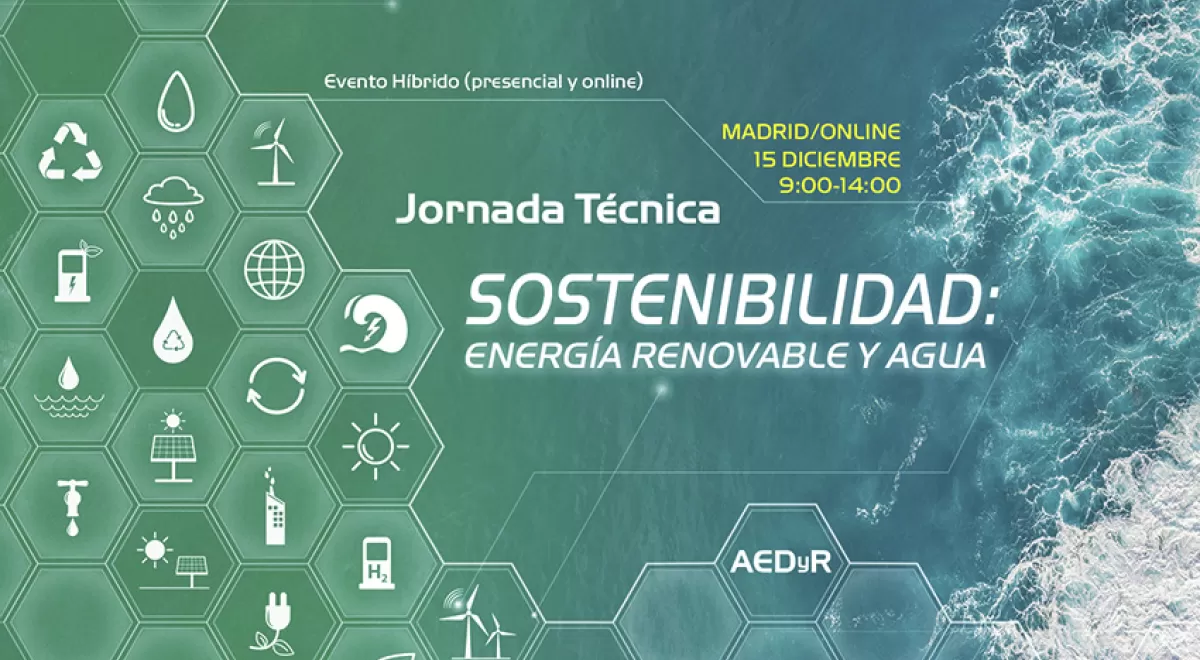 Este miércoles 15 de diciembre, AEDyR llevará a cabo la Primera Jornada Monográfica sobre Sostenibilidad: Energía Renovable y Agua, en formato híbrido. Ya puede consultar el programa completo, así como inscribirse en sus dos modalidades, online o presencialmente.